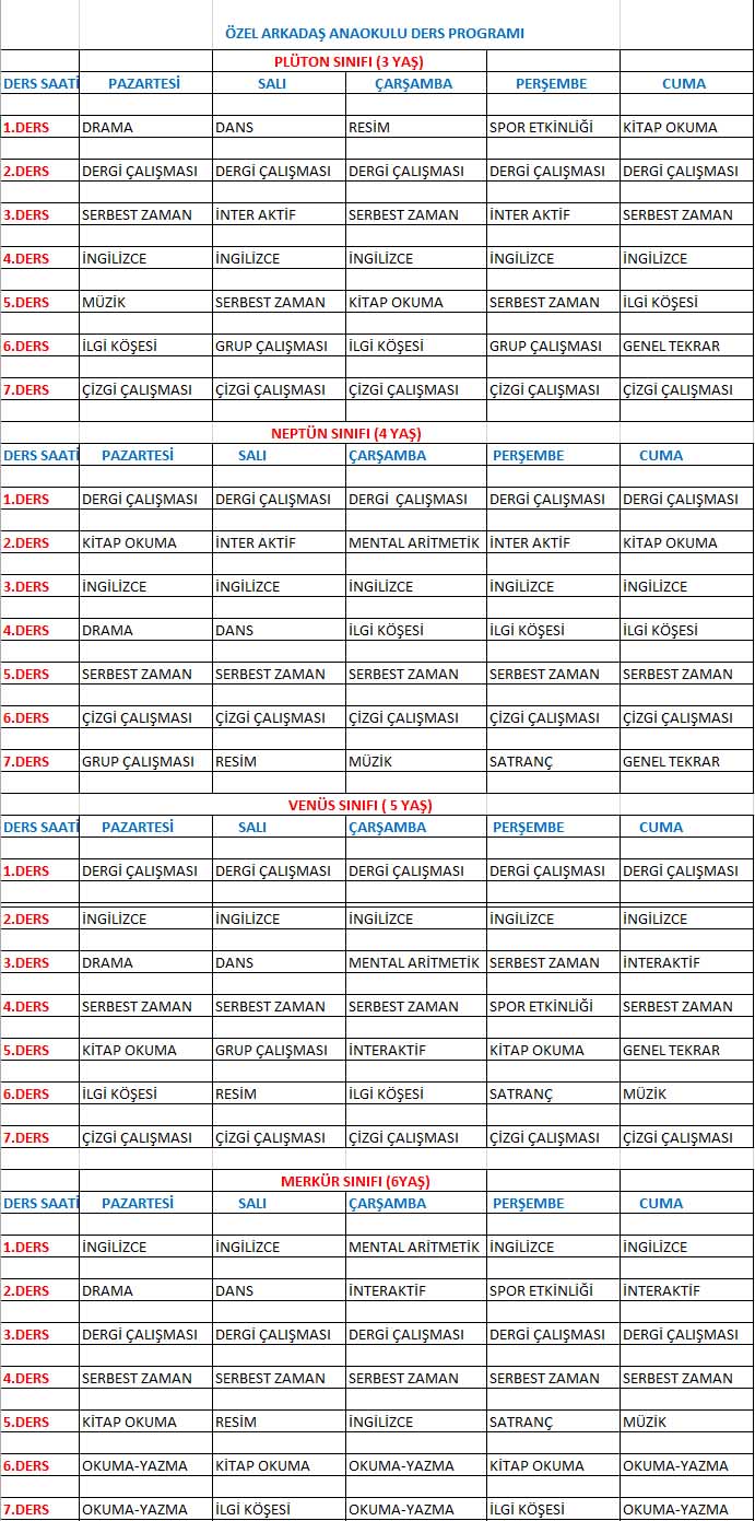 ARKADAÞ ANAOKULU ; Türk Milli Eðitim Bakanlýðý standartlarýna göre 2014-2015 Eðitim Öðretim yýlýnda faaliyete olan özel bir okuldur. Okulumuzda Türk Eðitim Müfredatýna uygun olarak Ýngilizce ve seçmeli ders olarak Mental Aritmetik öðretilecektir. Bu derslerin yaný sýra müzik,resim satranç,dans,drama ve 6 yaþ grubu için okuma dersleri verilmektedir.